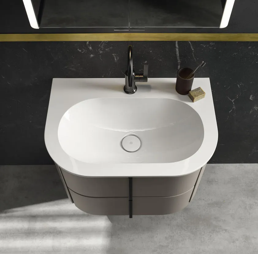 Da Gästebäder meist kleiner ausfallen, ist ein kompakter Waschtisch die beste Wahl. Er bietet volle Funktionalität, ohne den Raum zu überladen, und nutzt die Fläche optimal aus.