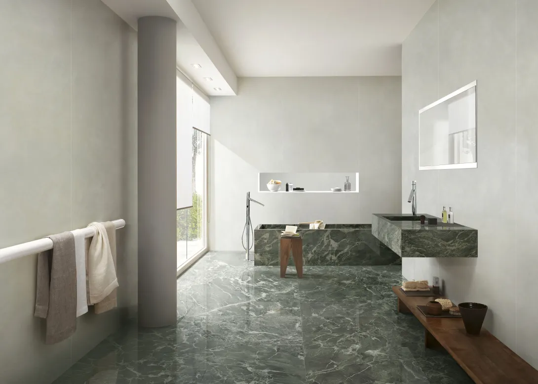 Verwenden Sie bei Naturstein niemals Scheuermittel. Sie zerstören die Politur, machen die Oberfläche stumpf und verhindern, dass Wasser sauber abperlt.
