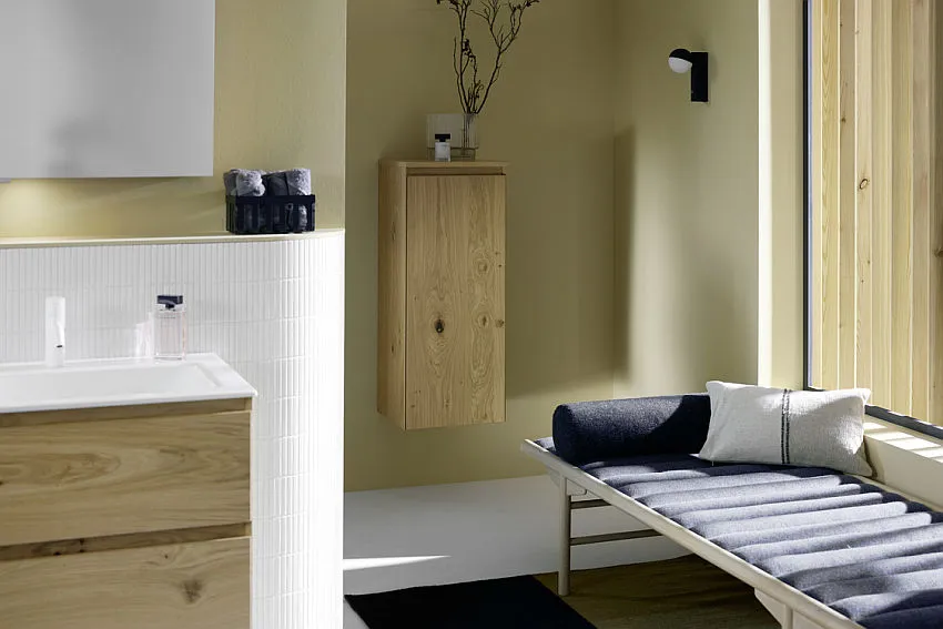 Klare Linien und zeitlose Materialien sind charakteristisch für die Möbel der Badezimmer-Serie Accura. Langlebige Oberflächen und flexibel gestaltbare Ablage- sowie Stauraummöglichkeiten verbinden Design und Funktionalität.