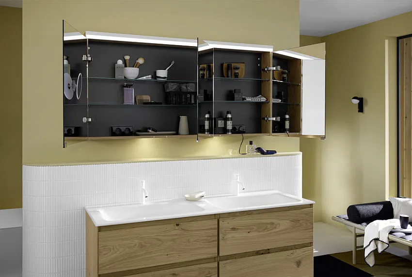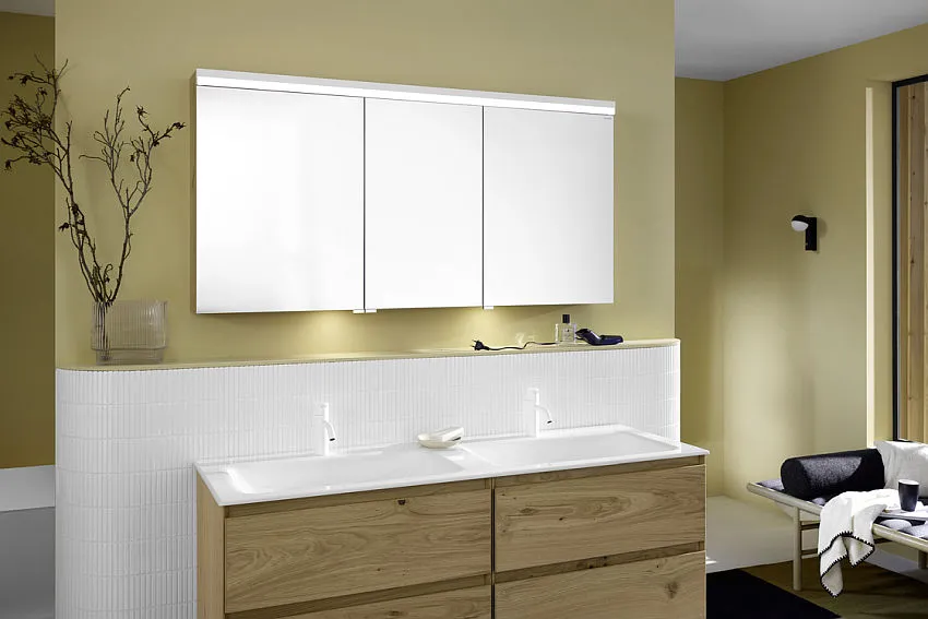 Die Leuchtspiegelschränke der Accura-Serie sind in verschiedenen Größen und Varianten erhältlich – von kompakten bis zu mehrtürigen Modellen mit großzügigem Stauraum. Integrierte LED-Beleuchtung sorgt für eine gleichmäßige Ausleuchtung, während Glasablagen im Inneren Ordnung schaffen. Einige Modelle sind zusätzlich mit praktischen Innenspiegeln ausgestattet und bieten damit noch mehr Komfort im Badezimmer.