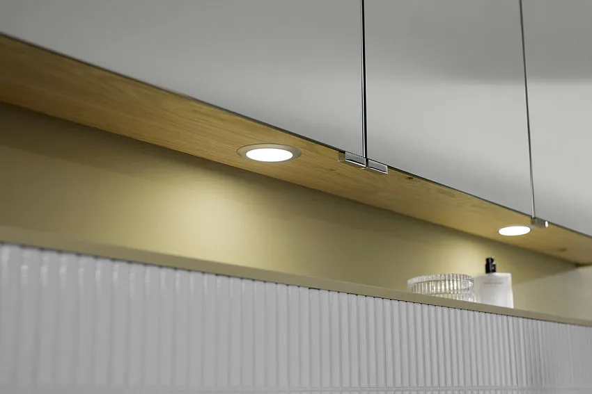 Neben den Spiegelschränken umfasst die Serie Accura auch rahmenlose Spiegel in runder oder eckiger Ausführung. Die Modelle sind in verschiedenen Größen erhältlich und fügen sich durch ihr minimalistisches Design harmonisch in jedes Badezimmer ein. Viele Varianten verfügen über integrierte LED-Beleuchtung, die für eine angenehme, gleichmäßige Ausleuchtung sorgt – ideal für tägliche Pflege und Kosmetik.
