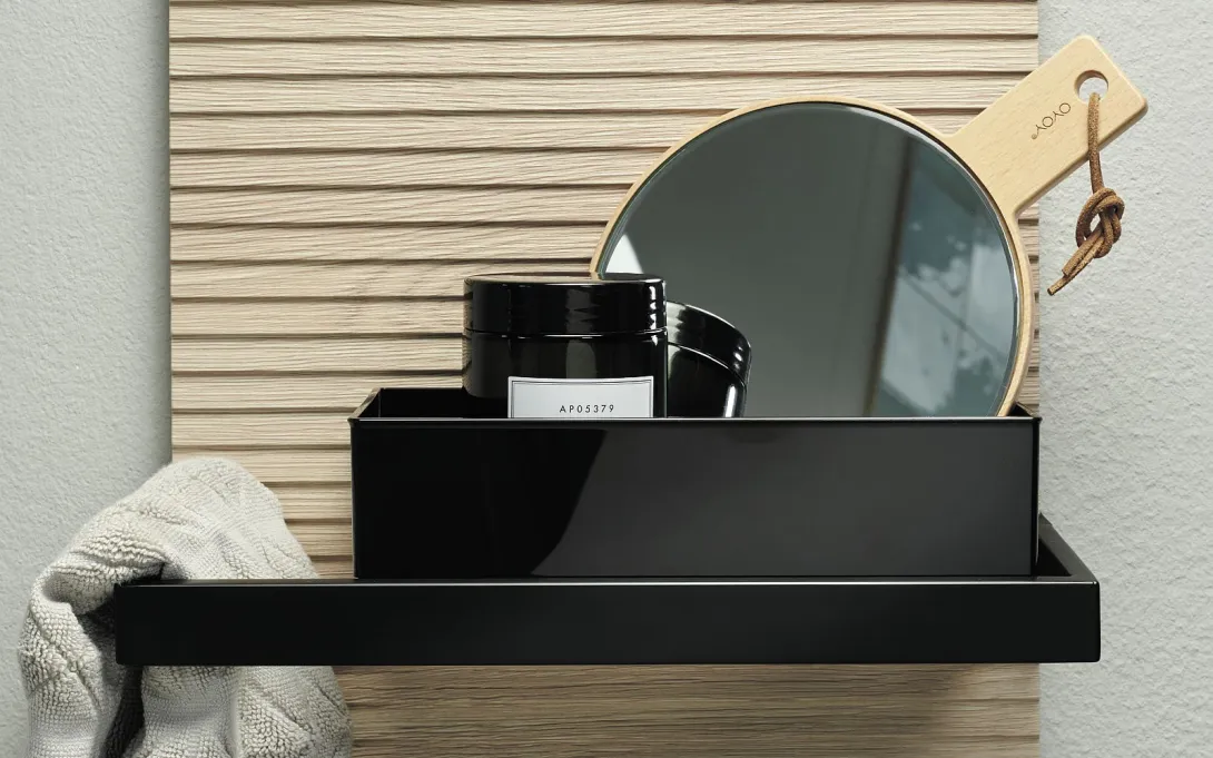 Das von Patrick Frey entworfene Badprogramm umfasst wandhängende Schränke, Waschtischunterschränke in verschiedenen Breiten, Einzel- und Doppelwaschtische sowie moderne Leuchtspiegel und Spiegelschränke. Ein cleveres Paneelsystem ermöglicht es, Ablagen für Spiegel, Fronten und Wandboards einfach und werkzeuglos einzuklinken – für maximale Flexibilität bei der Badgestaltung.