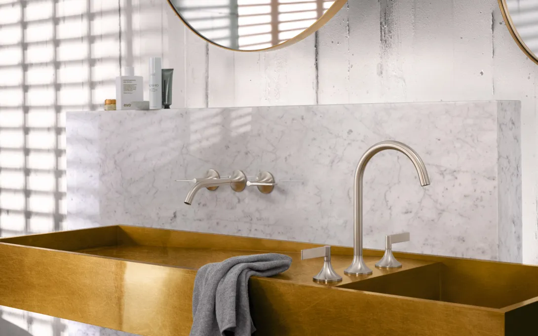 Die Armaturenserie Vaia von Dornbracht fügt sich harmonisch in traditionelle ebenso wie in moderne Badkonzepte ein. Im Transitional Style vereint sie Elemente unterschiedlicher Stilwelten zu einem stimmigen Gesamtbild.