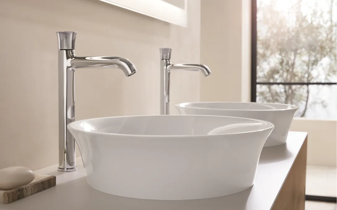 Die Waschtischmischer sind in den Höhen S, M und XL verfügbar. Ergänzend bietet die Serie passende Armaturen für Bidets, Duschen und Badewannen.