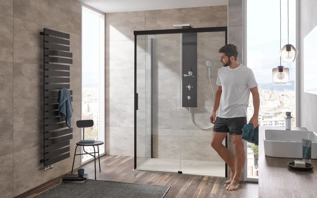 Gefertigt aus 8 mm starkem Sicherheitsglas, verbinden die Kabinen Stabilität mit einer eleganten, leichten Optik. Das minimalistische Design sowie Trendfarben wie Schwarz-matt unterstreichen den modernen Charakter.